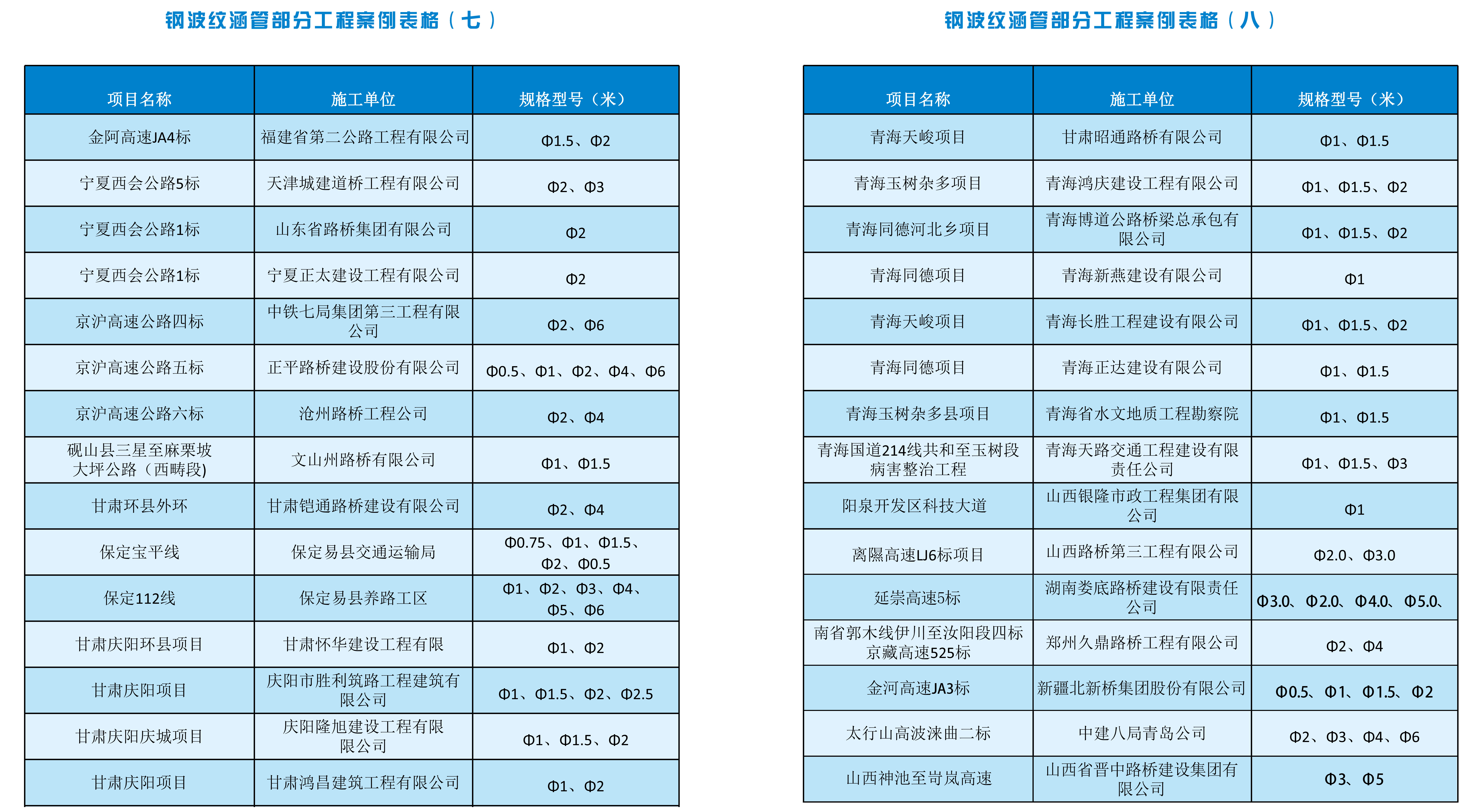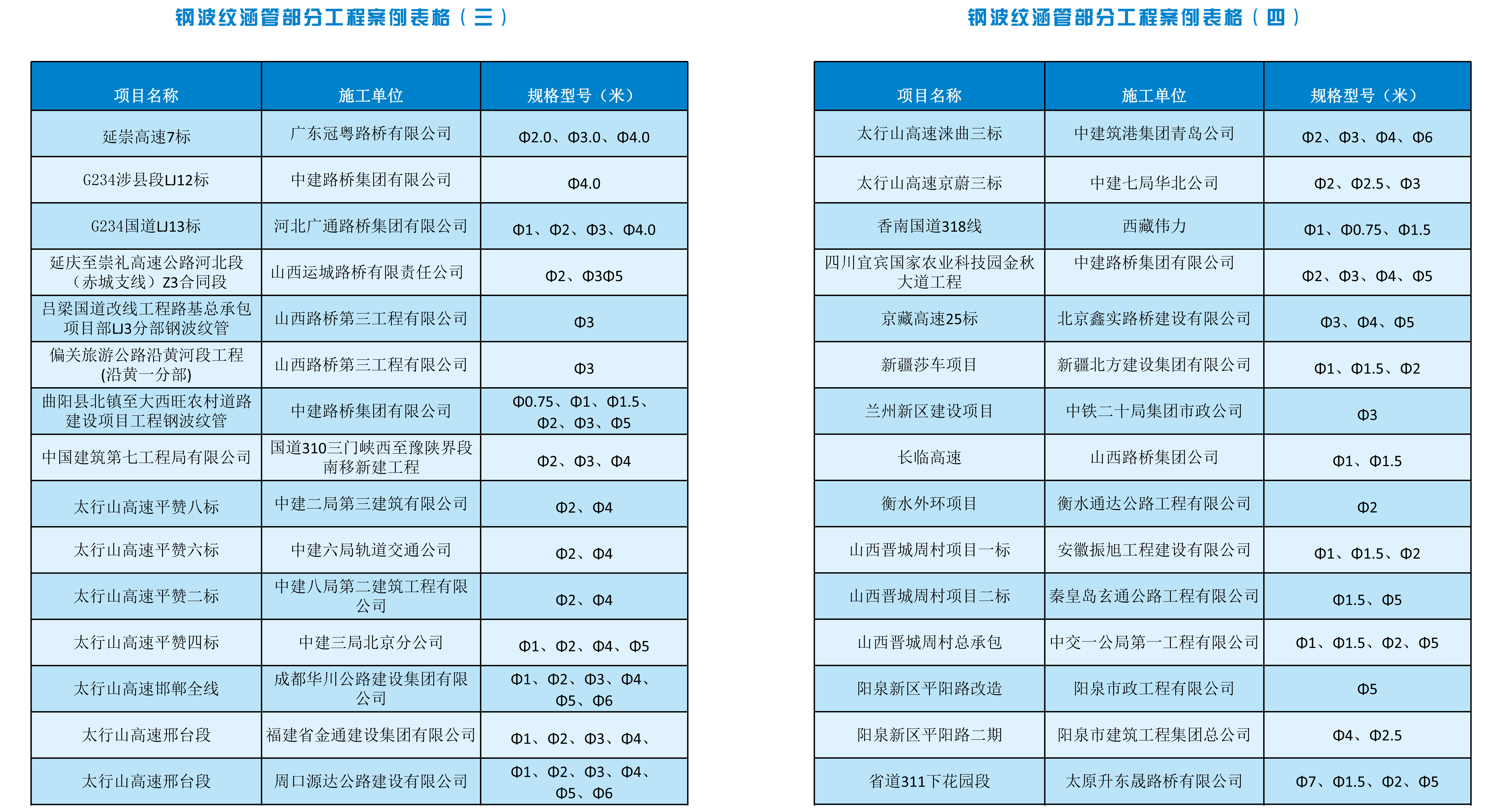 部分工程案例表格