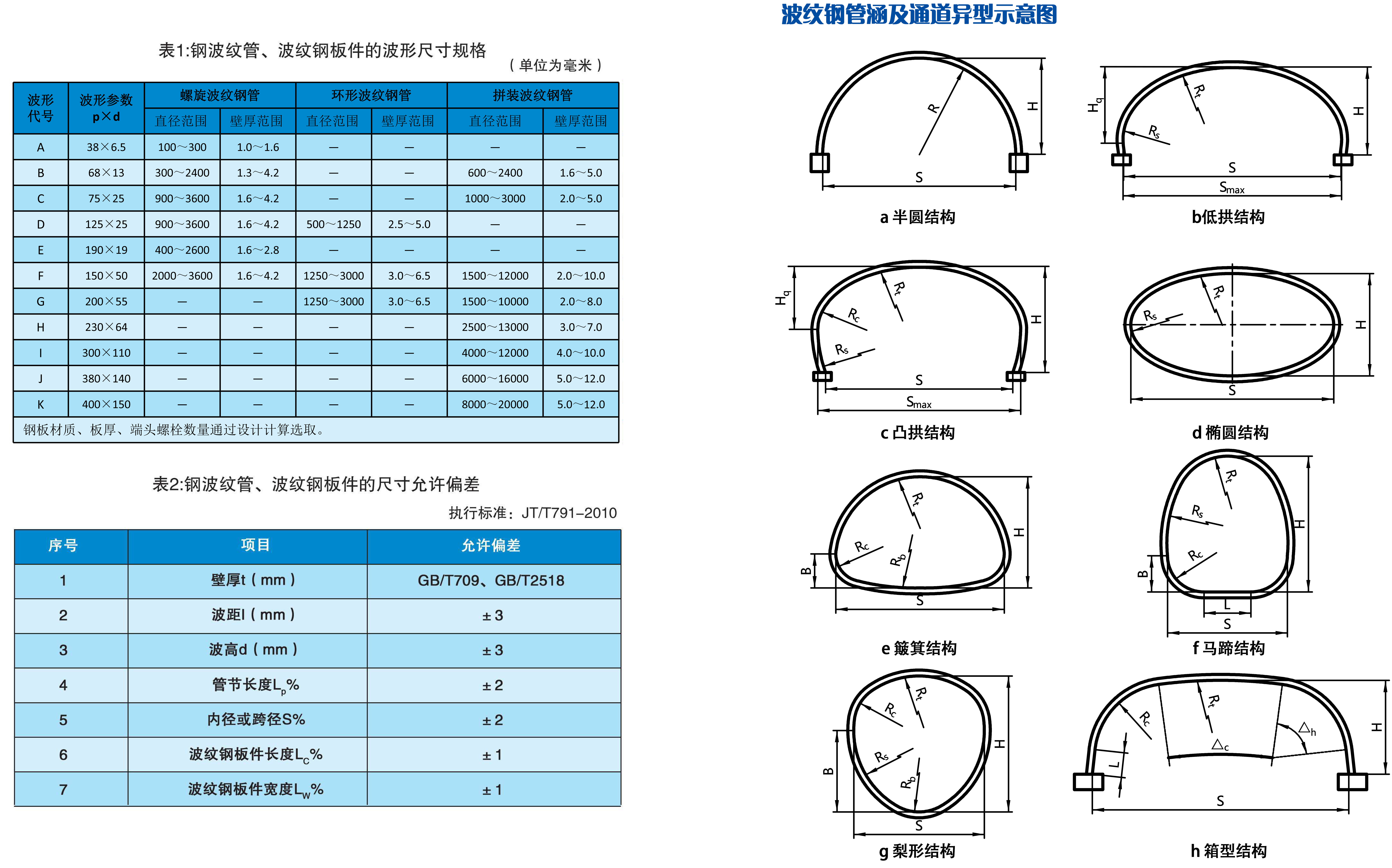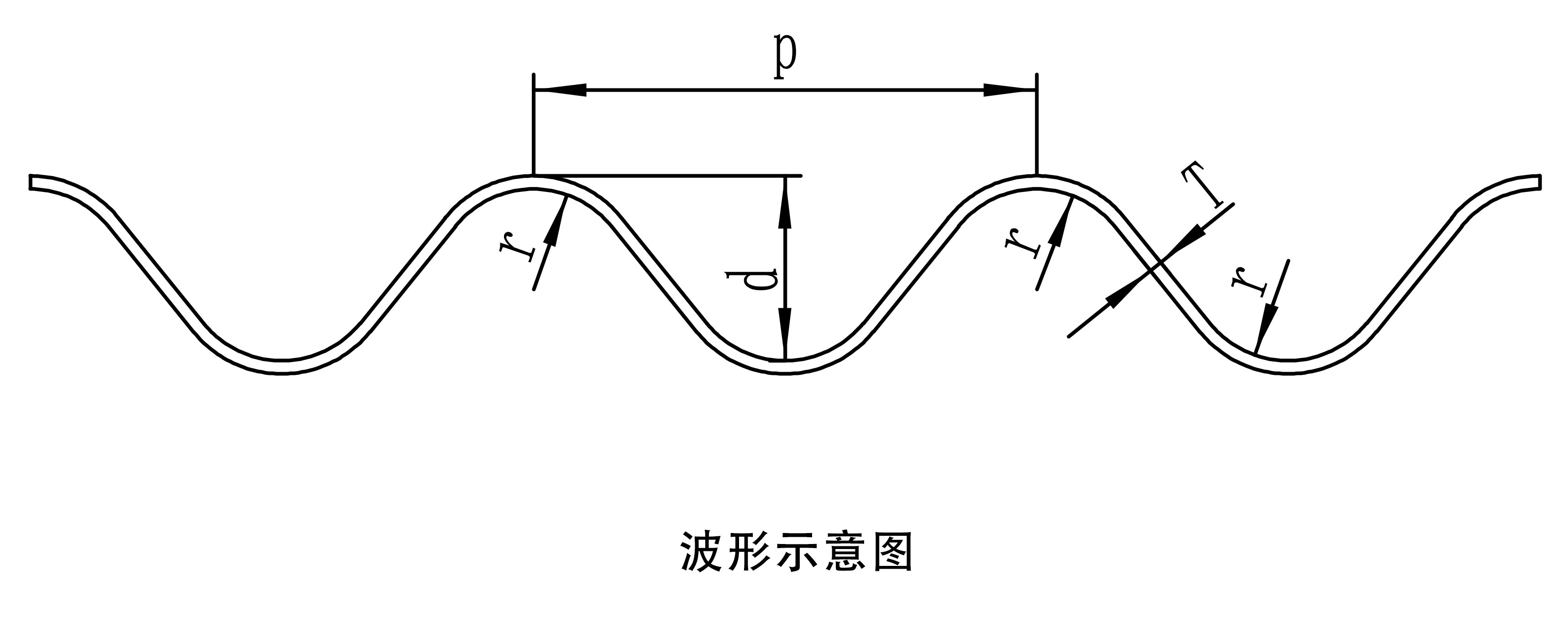 環(huán)形波紋鋼管、波紋鋼板件的波形尺寸規(guī)格應符合下表的規(guī)定。