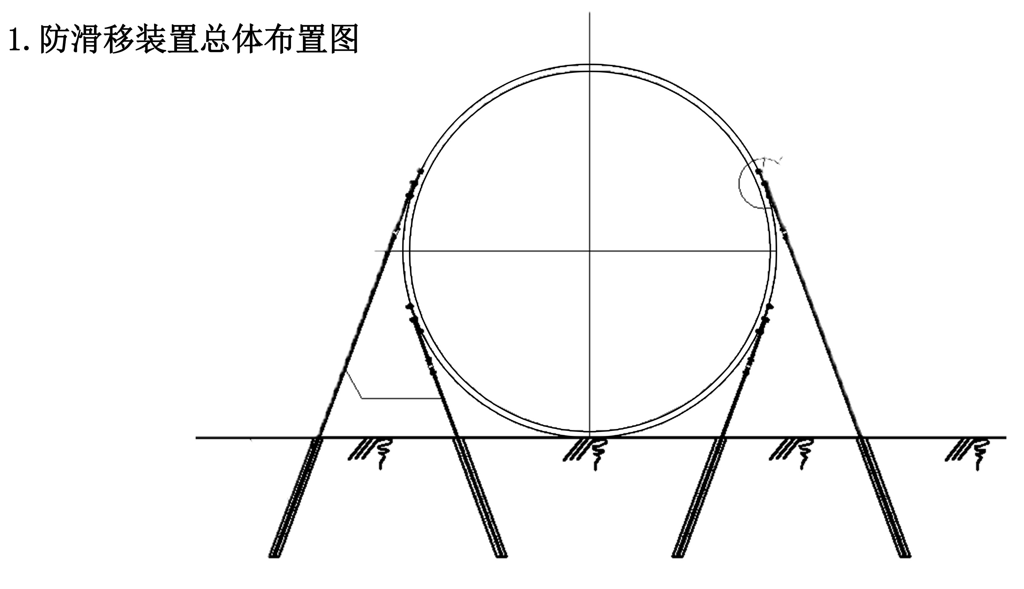1、波紋鋼管道位于陡坡地形時(shí),在車輛、填土、波紋鋼管重量(包括管內(nèi)流水重量)的作用下,產(chǎn)生下滑力,當(dāng)波紋鋼管道自身抗滑摩擦力小于下滑力時(shí),波紋鋼管道將沿坡滑移。本裝置通過(guò)與波紋鋼管道連接錨桿拉力的作用,達(dá)到力的平衡,滿足了波紋鋼管道防渭移的需要。
