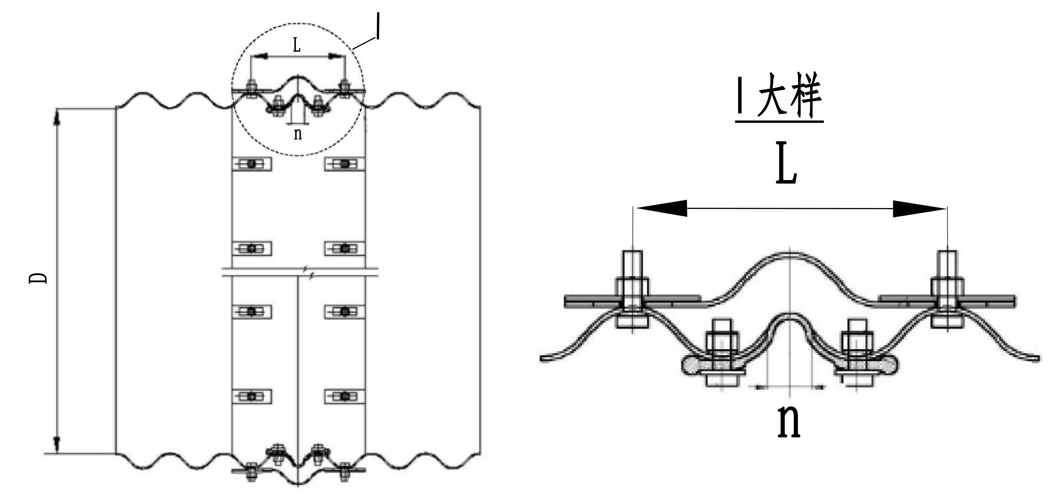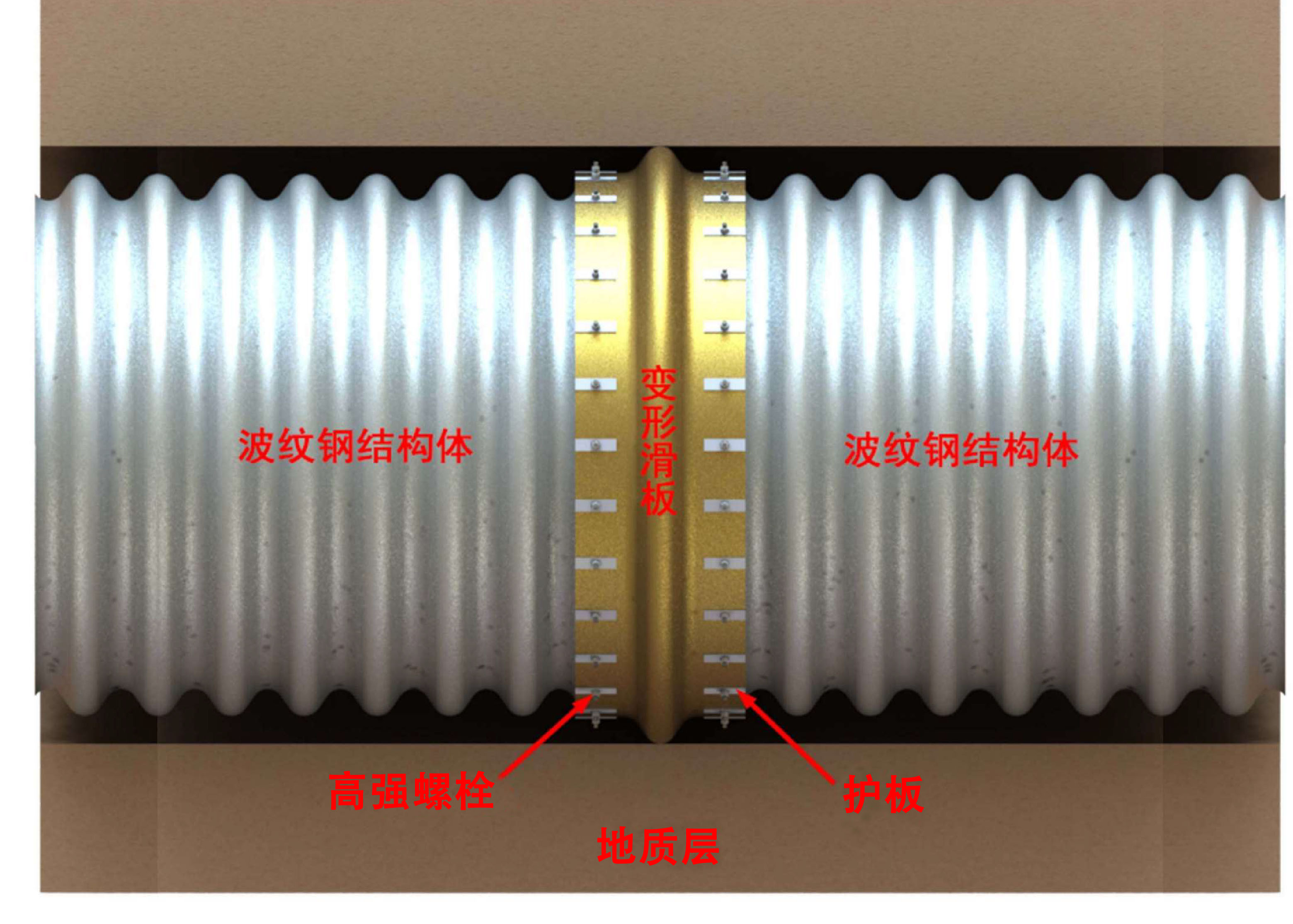 本結(jié)構(gòu)屬于波紋鋼結(jié)構(gòu)用于埋置管道、橋涵工程領(lǐng)域范疇,是防止地基不均勻沉降和由于溫度變化引起的波紋鋼結(jié)構(gòu)的伸縮、沉降的變形裝置。